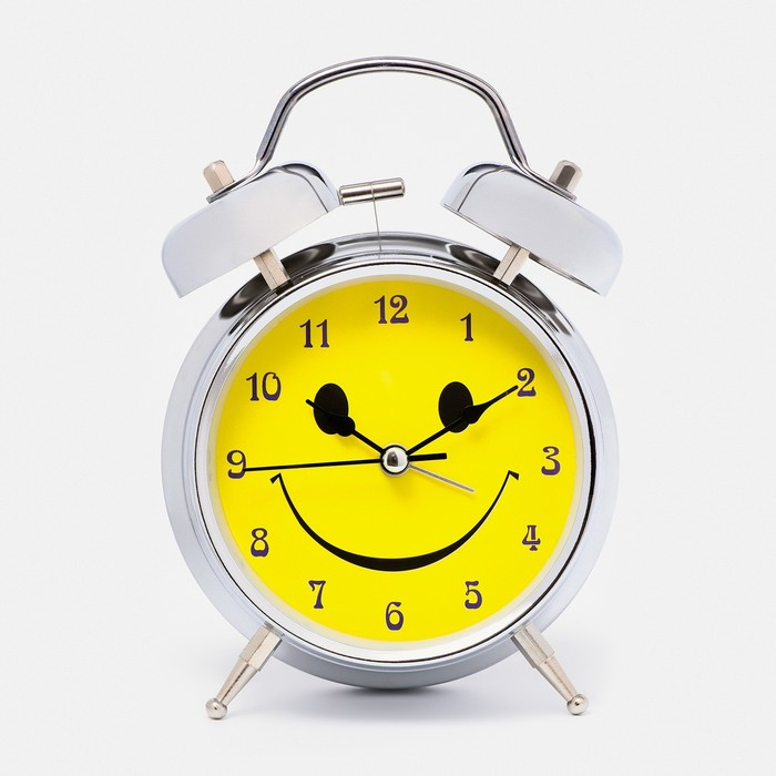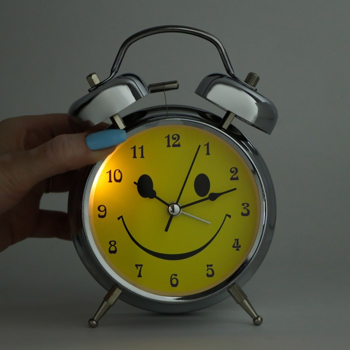 Будильник "Смайл", d-11.5 см, с подсветкой, хром