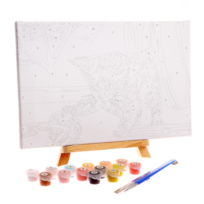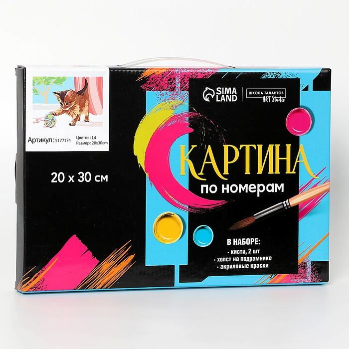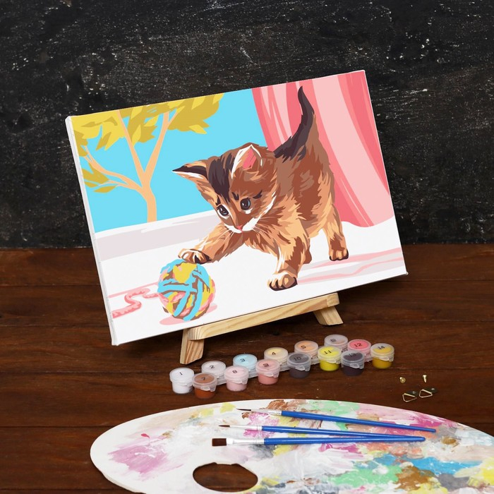 Картина по номерам на холсте с подрамником «Котёнок с клубком», 30х20 см понравится и детям, и взрослым.