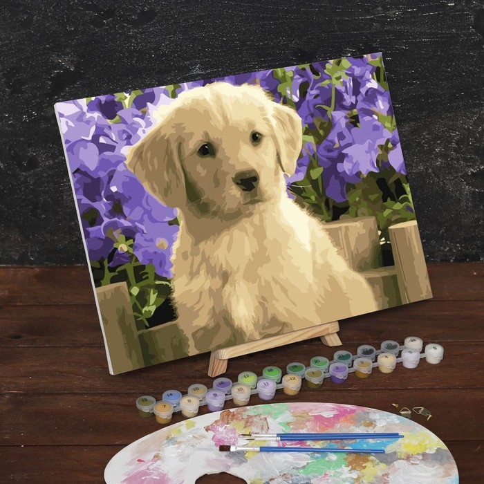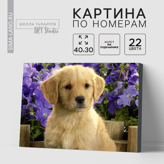 Картина по номерам на холсте с подрамником «Щенок лабрадора», 40х30 см понравится и детям, и взрослым.