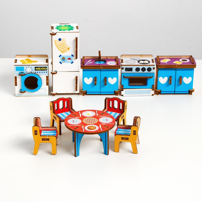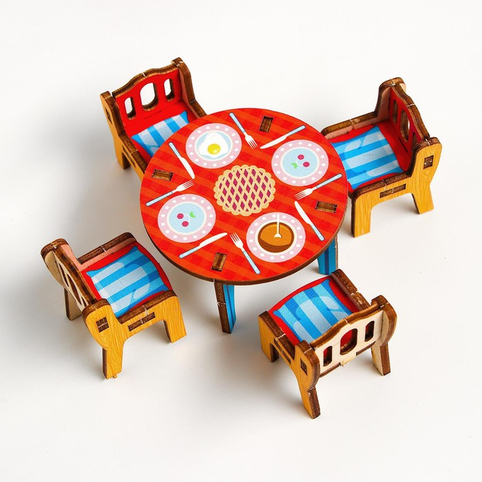 Создайте миниатюру настоящей комнаты из деревянных деталей. Предметы мебели сделаны из экологически натурального и безопасного материала. Изделия выглядят очень реалистично и идеально подойдут как для игр малыша, так и в качестве декора для детской.