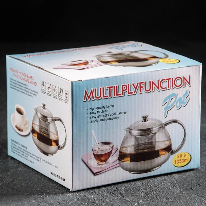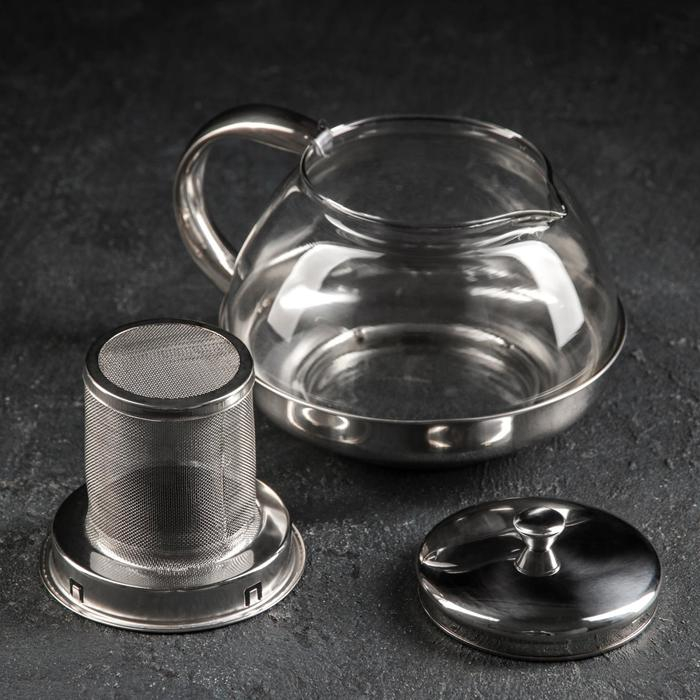 Чайник стеклянный заварочный с металлическим ситом «Металлик», 1 л