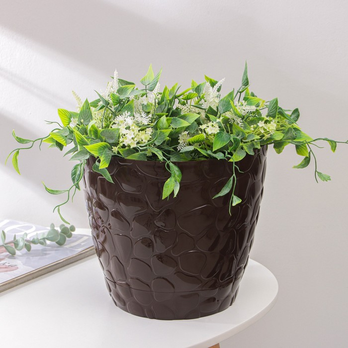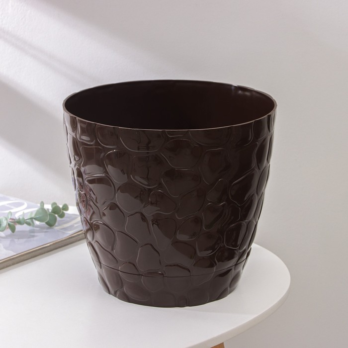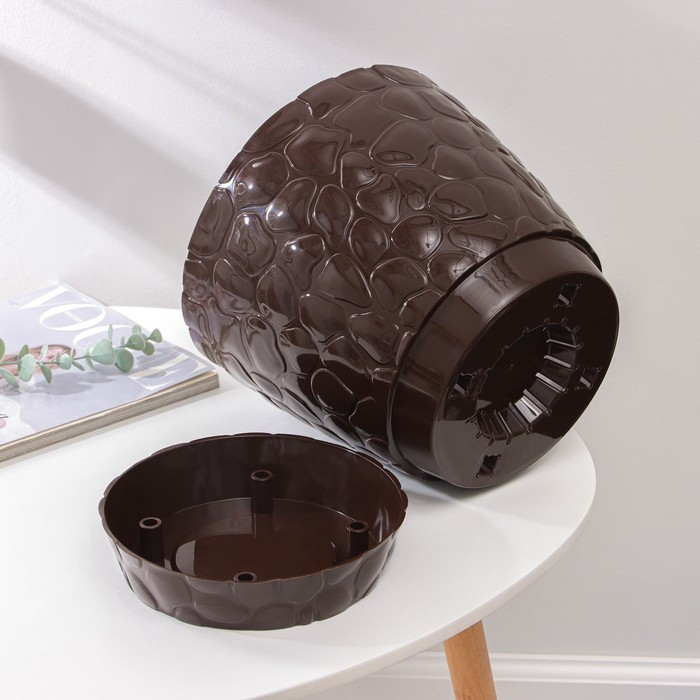Горшок с поддоном «Камешки», 8 л, цвет шоколадный