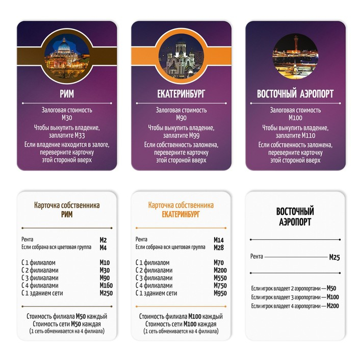 - Остановились на поле, которое принадлежит другому участнику? Заплатите ренту по тарифу, указанному на карточке.