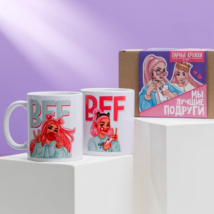 Подарочный набор кружек сублимация «Для лучших подруг», 2 кружки 320 мл, с нанесением