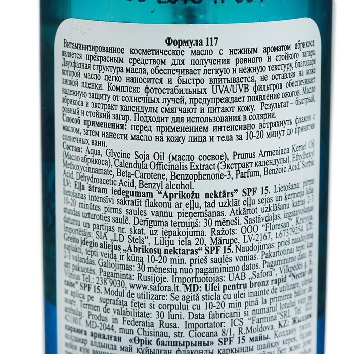 Масло для загара "Абрикосовый нектар", с антиоксидантным действием, SPF 15, 135 мл