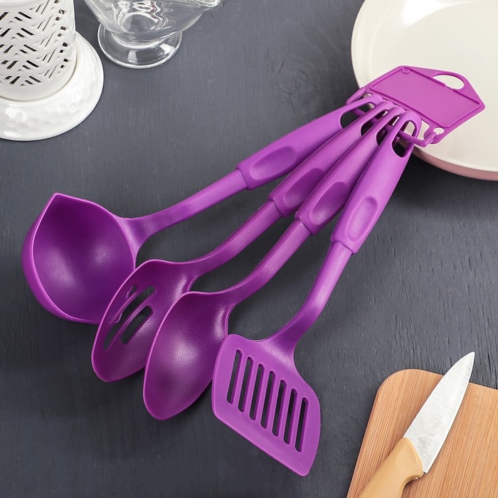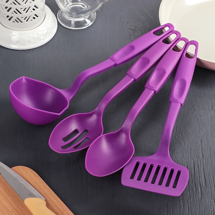Набор кухонных принадлежностей Доляна «Радуга», 4 предмета, фиолетовый