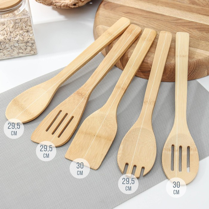 Набор кулинарных лопаток, 31 см, 5 шт, бамбук