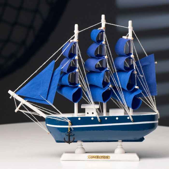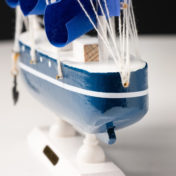 Корабль сувенирный малый «Дорита», борта синие с белой полосой, паруса синие,23×5,5×21 см
