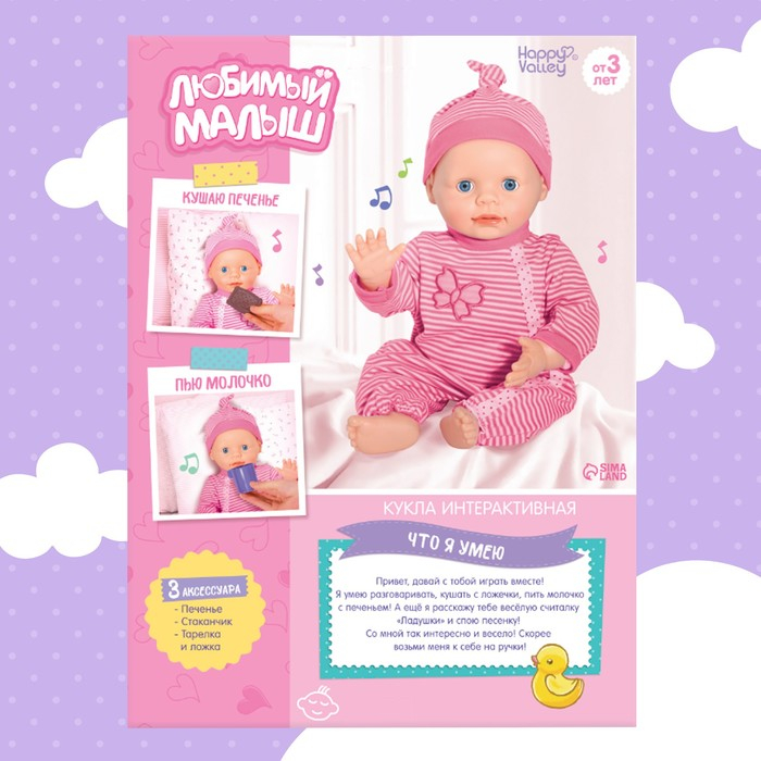 Пупс интерактивный «Малыш», 6 функций, озвученный, кушает, пьёт, играет в ладушки, высота 40 см