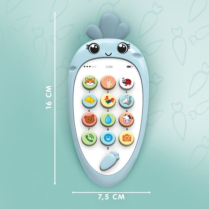 Малыш обязательно подружится с музыкальным телефончиком в виде забавной морковки. Крошка-моркошка издаёт смешные звуки, говорит забавные фразы и знает 9 весёлых песенок.