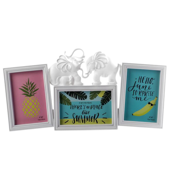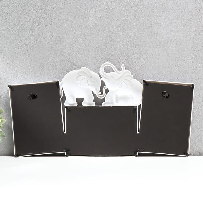 Фоторамка пластик на 3 фото 10х15 см "Два слона" белая 22х43х2 см