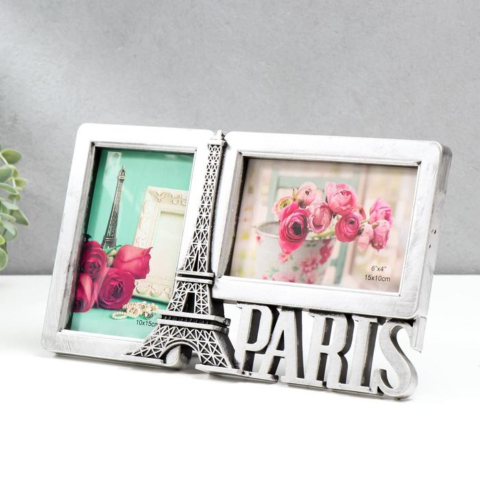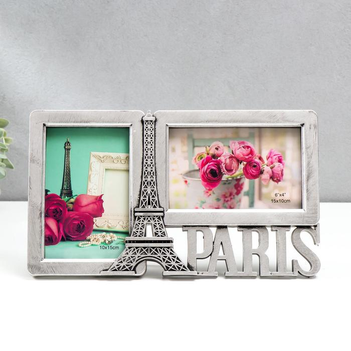 Фоторамка пластик на 2 фото 10х15 см "Эйфелева башня. Париж" тёмное серебро 17х29,5х2 см