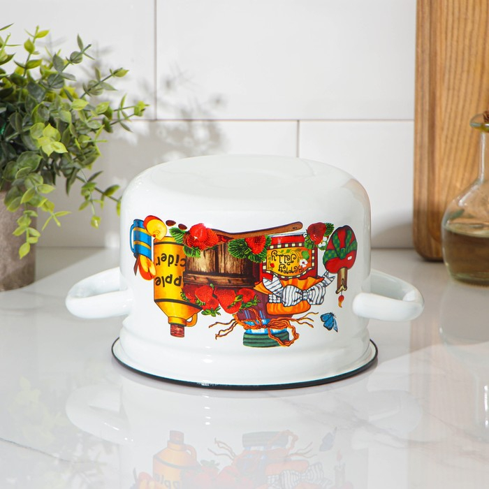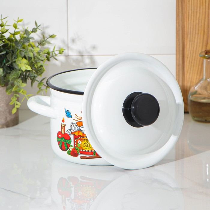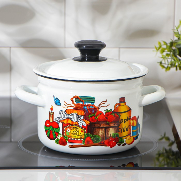 Кастрюля эмалированная, 2 л, индукция, деколь МИКС, цвет белый