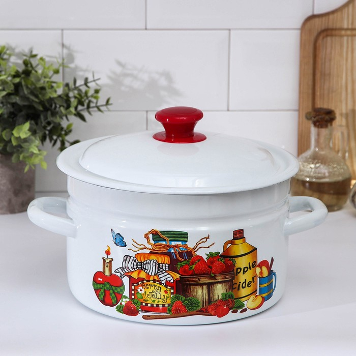 Кастрюля эмалированная цилиндрическая, 3 л, индукция, деколь МИКС