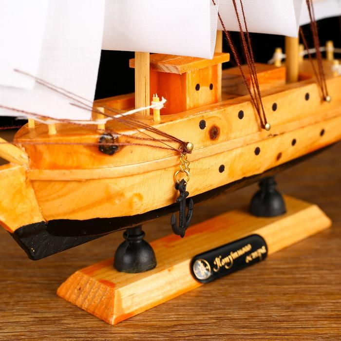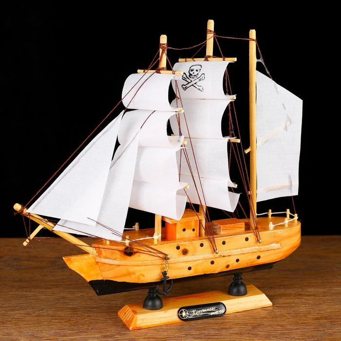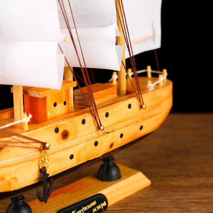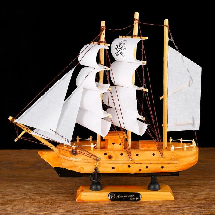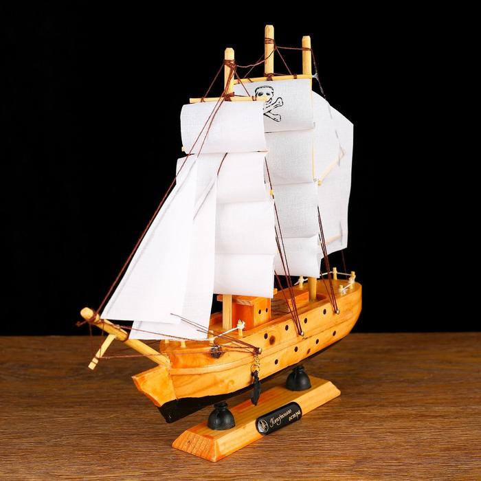 Корабль сувенирный малый «Аляска», борта светлое дерево, паруса белые пиратские, 4,5×23×24 см