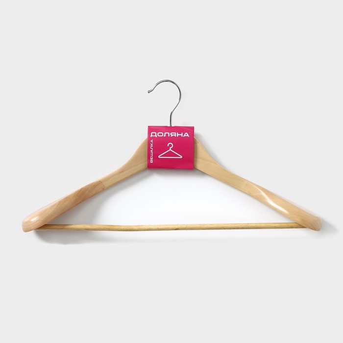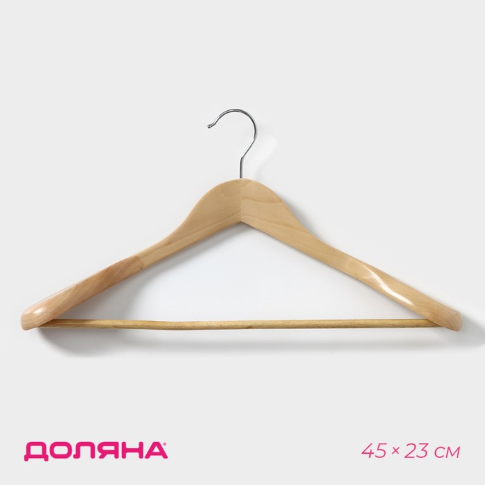 Плечики - вешалка для одежды Доляна, 45×23 см, с перекладиной, широкие плечики, цвет светлое дерево
