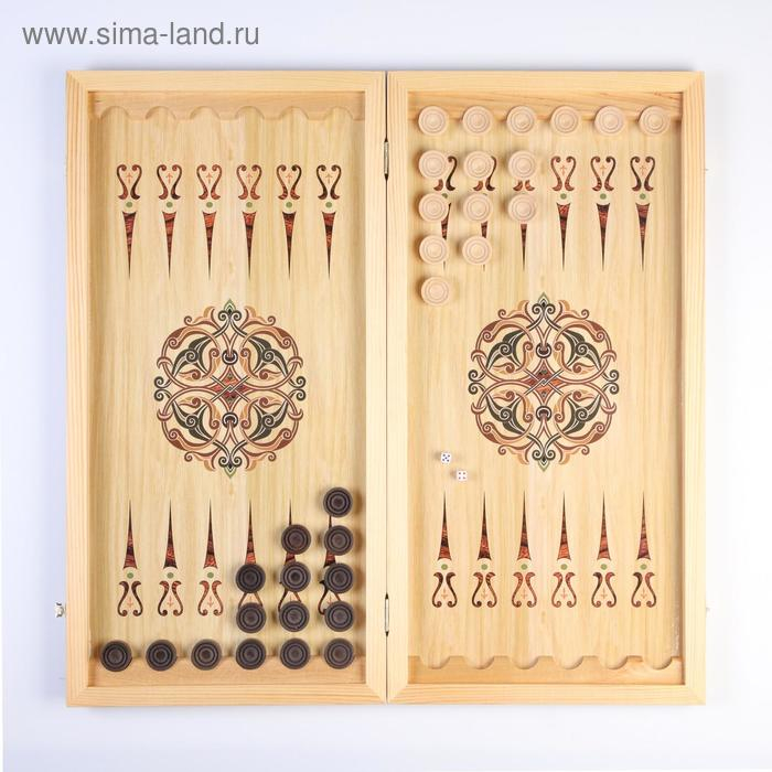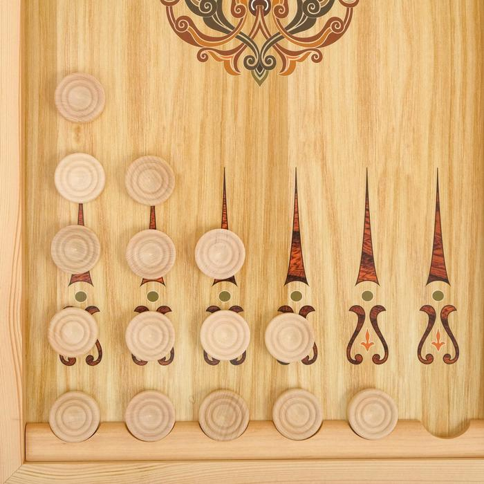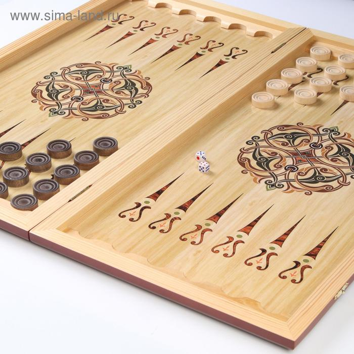 Нарды деревянные большие, настольная игра "Узор", 40 х 40 см, с полем для игры в шашки