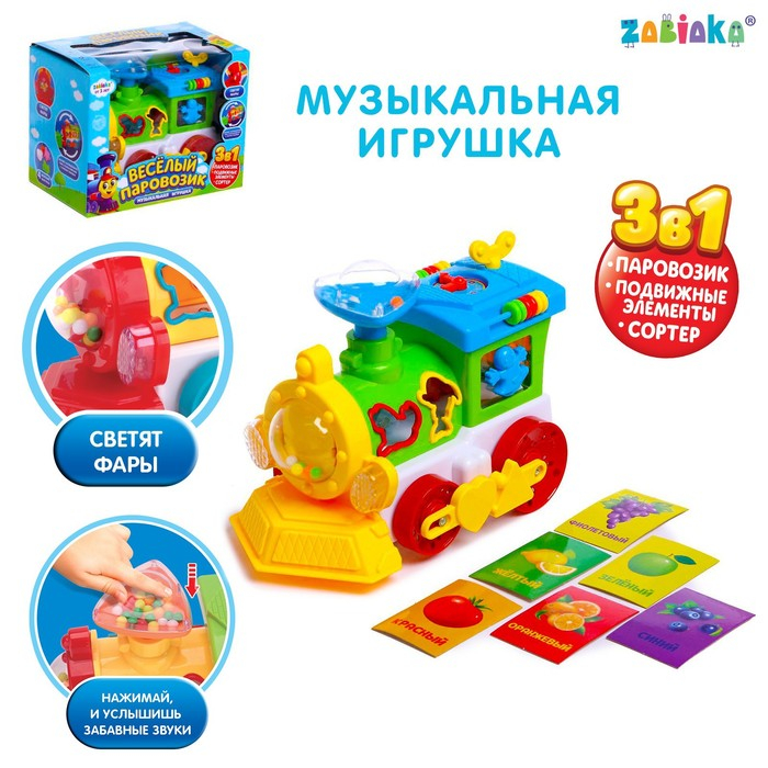 Сортер «Весёлый паровозик» развивает музыкальное, визуальное восприятие, мелкую моторику рук, воображение.