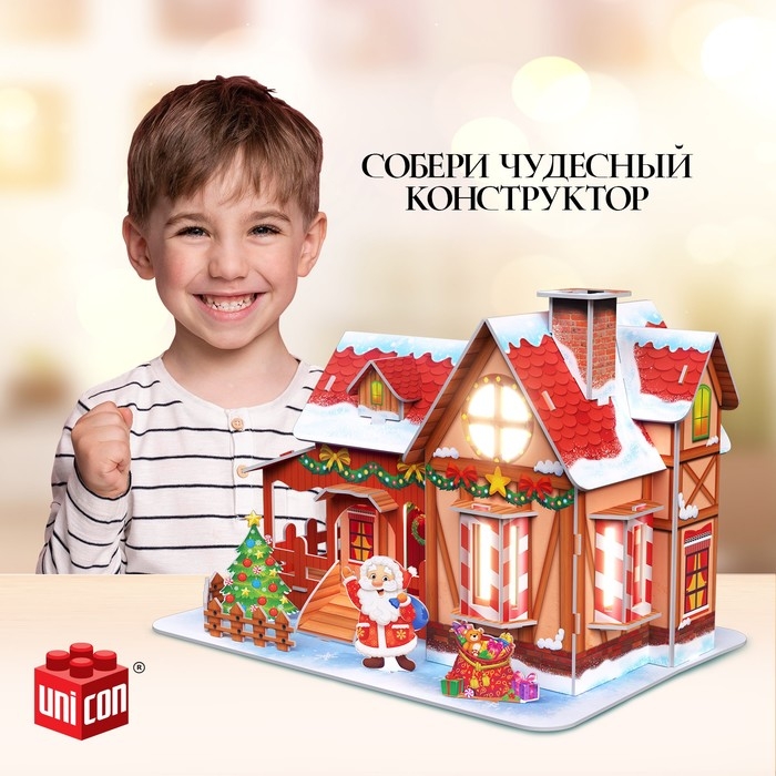 3D-конструктор «Дом Деда Мороза», с гирляндой, 34 детали
