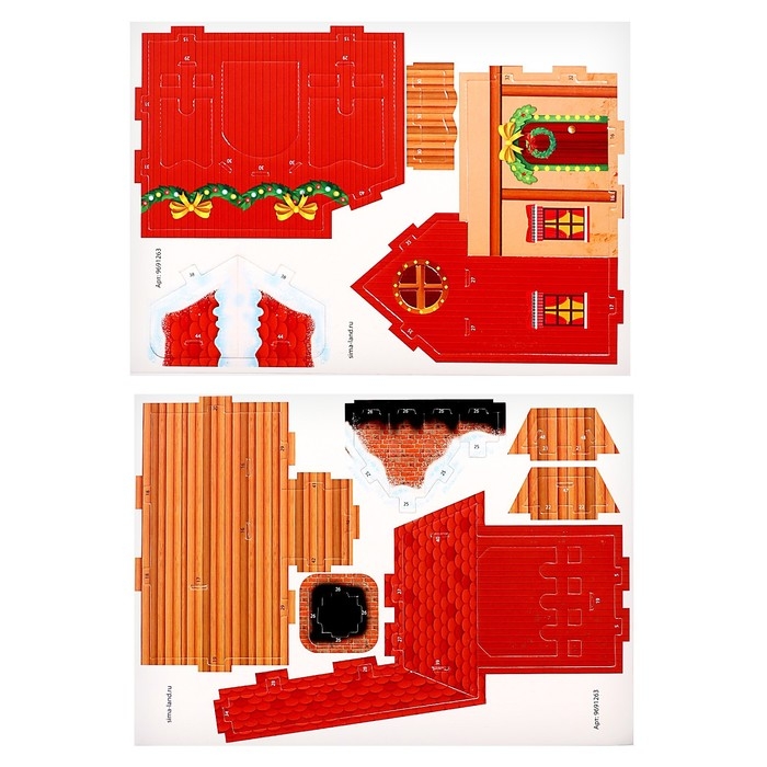 Домик-раскраска 3 в 1 «В гостях у Дедушки Мороза», 5 фломастеров, 6 деталей