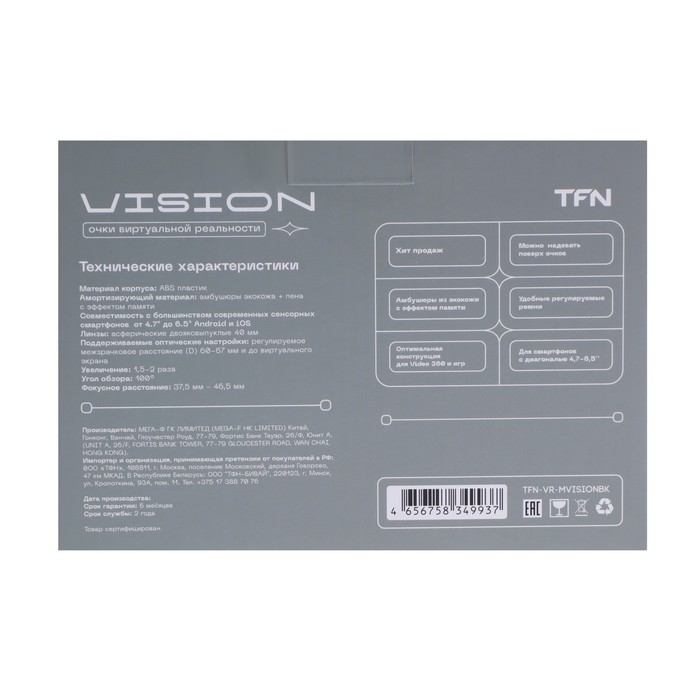 Очки виртуальной реальности для смартфонов TFN VR VISON с диагональю до 6,5 дюймов позволяют пользователям полностью погрузиться в захватывающий мир 3D-изображений и игр. С легкостью подключайтесь к своим любимым устройствам и наслаждайтесь высококачественным изображением и звуком, ощущая себя в самом центре событий.