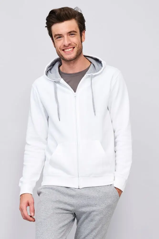 Толстовка мужская на молнии Soul Men 290 с контрастным капюшоном, белый, размер XXL
