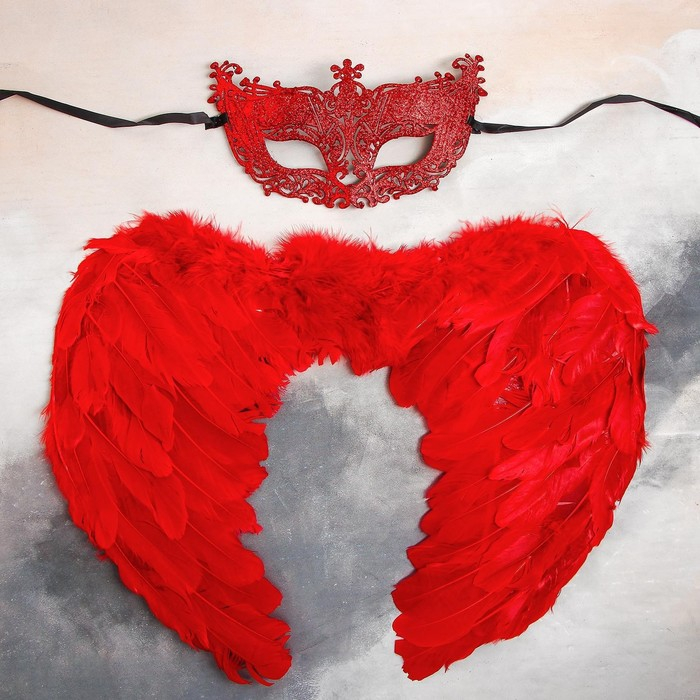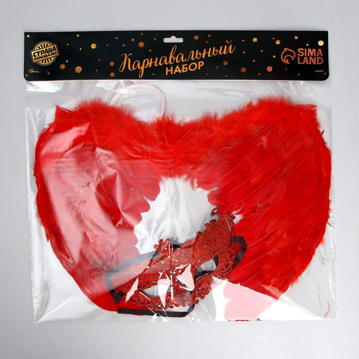 Карнавальный набор «Красный ангел», крылья, маска