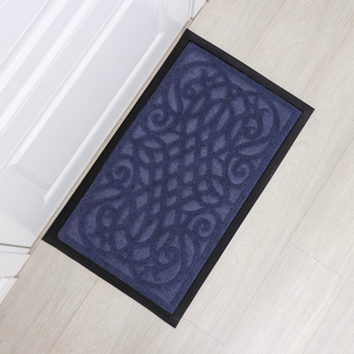 Коврик влаговпитывающий придверный с окантовкой Доляна «Вензель», 45×75 см, цвет МИКС