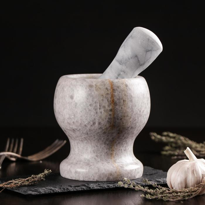 Ступка с толкушкой Magistro «Мрамор», натуральный камень, цвет белый