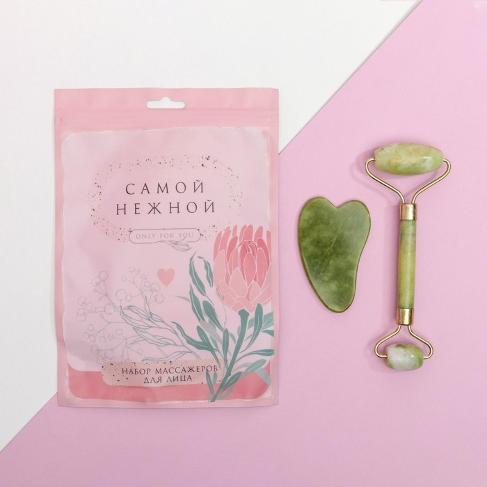 Массажер для лица, гуаша набор «Самой нежной», 14 х 20 см, кальцит и серпенти