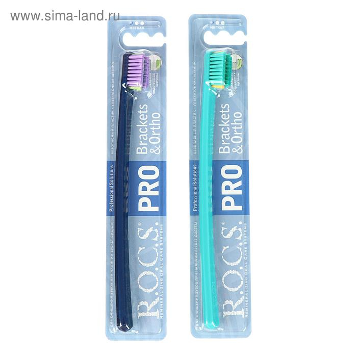 Зубная щетка R.O.C.S Pro Brackets & Ortho, для брекет-систем, мягкая, микс
