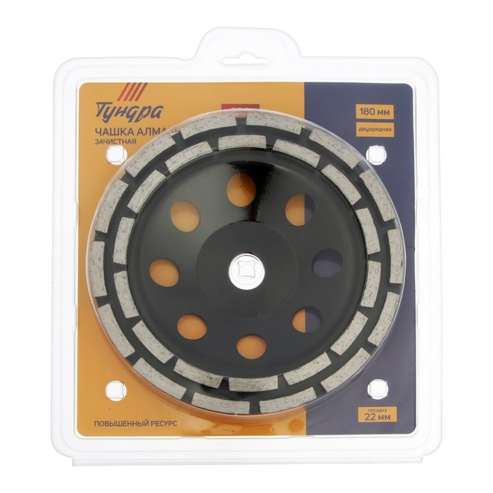 Чашка алмазная зачистная двухрядна ТУНДРА предназначена для работ с угловой шлифовальной машиной.