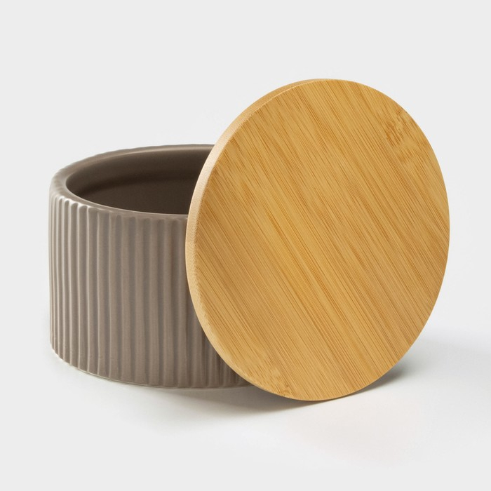 Банка для хранения сыпучих продуктов «Дымка», 570 мл, 12×7,5 см, с бамбуковой крышкой, керамическая, цвет бежевый