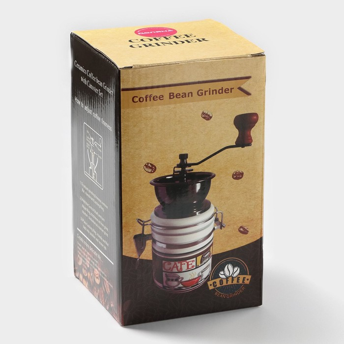 Кофемолка ручная «Кофейные зёрна», 10×10×18 см, керамический корпус
