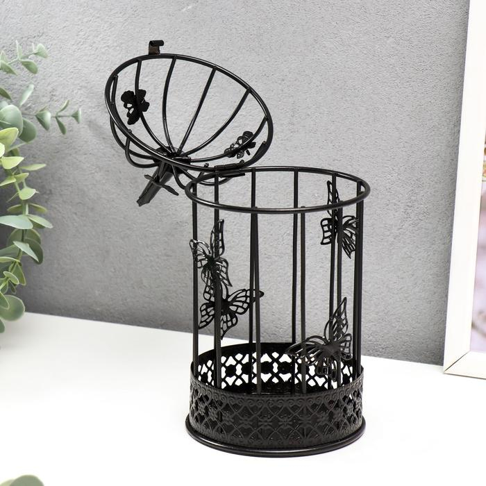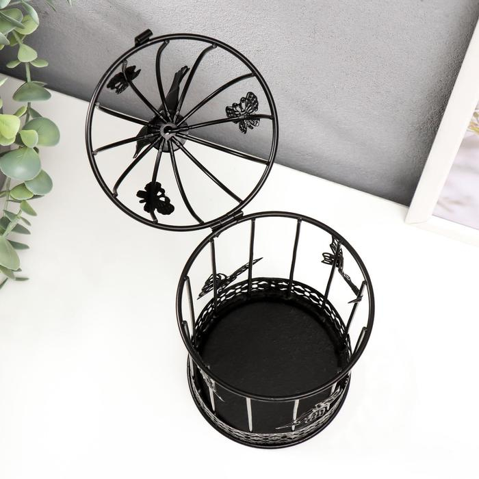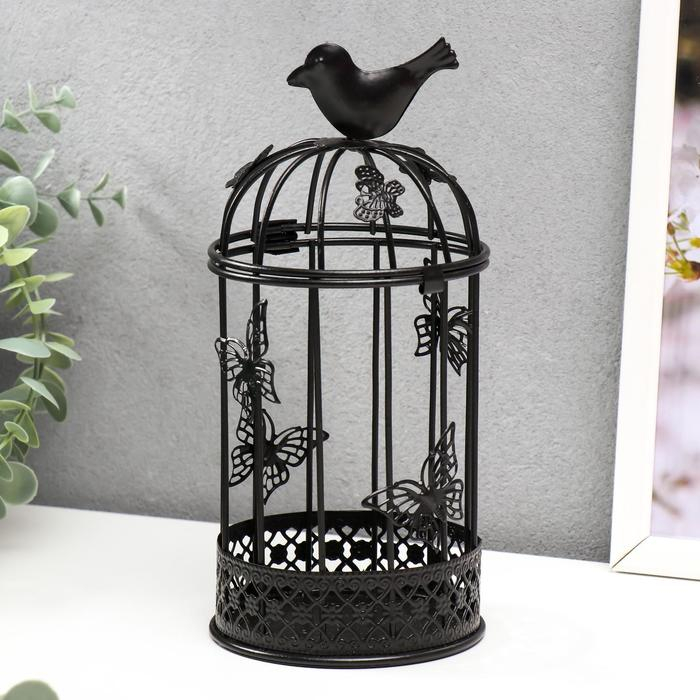 Подсвечник металл 1 свеча "Птица и клетка с бабочками" чёрный 21,5х10х10 см