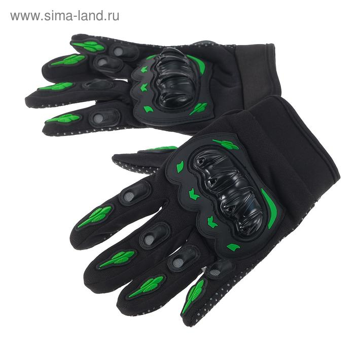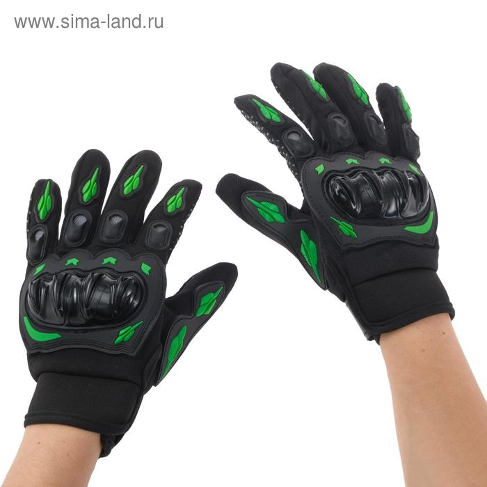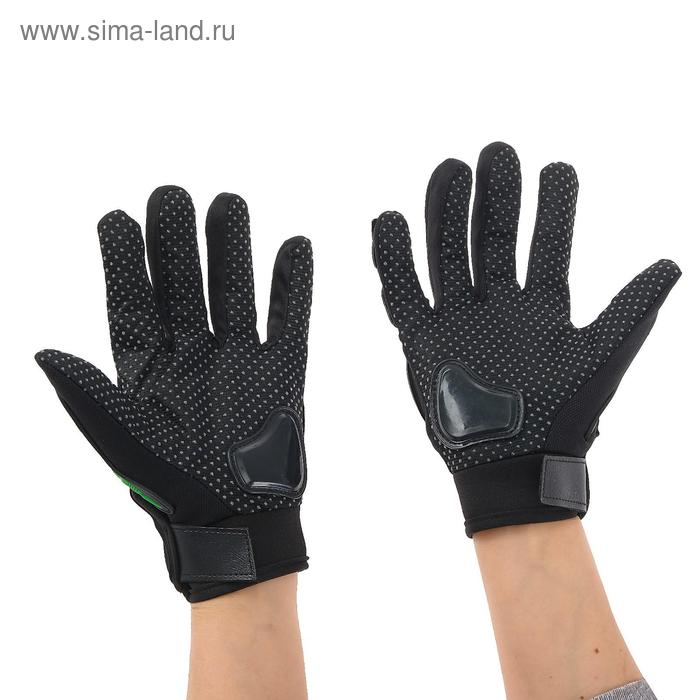 Перчатки мотоциклетные с защитными вставками, пара, размер L, черно-зеленый