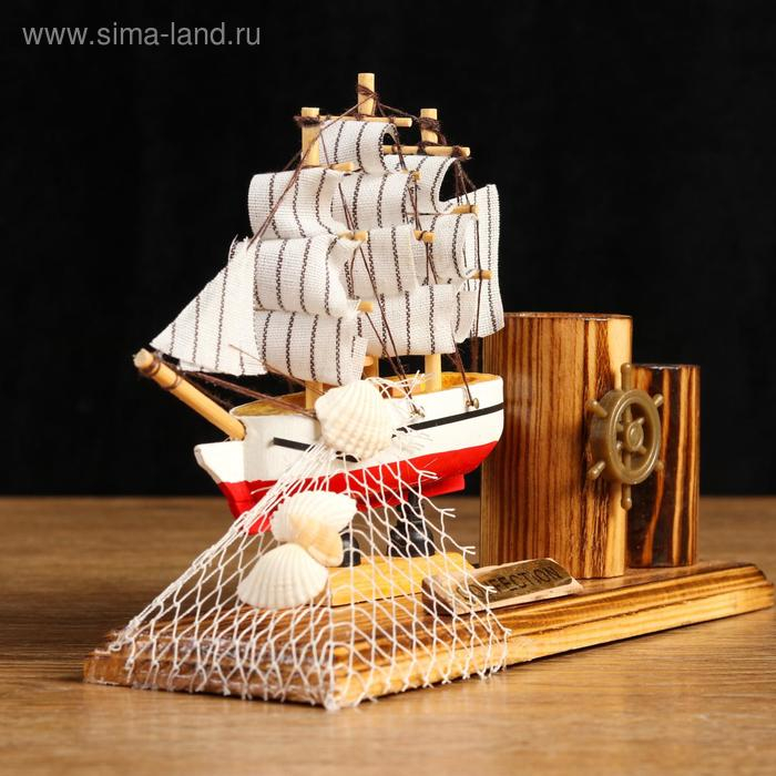 Корабль сувенирный на подставке, с двумя карандашницами 22*7*15см
