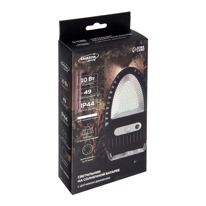Садовый светильник на солнечной батарее с датчиком движения, накладной, 9.5 × 13 × 5 см, 49 LED, свечение белое