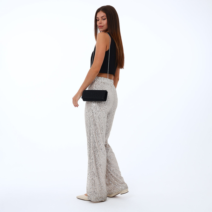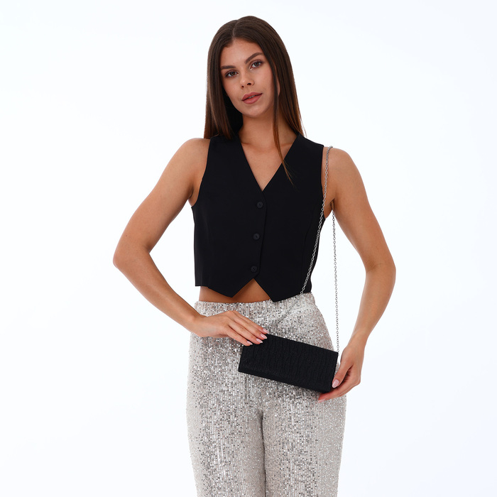 Сумка-клатч на магните, длинная цепь, цвет чёрный