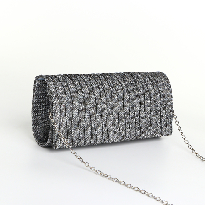 Сумка-клатч на магните, длинная цепь, цвет серебристый