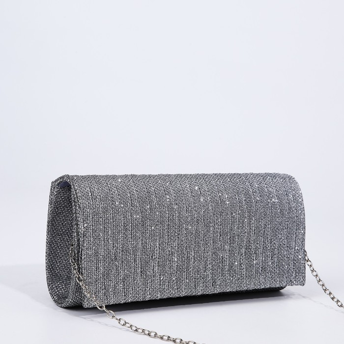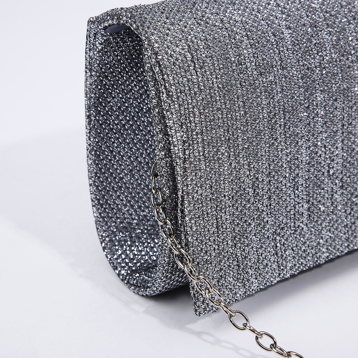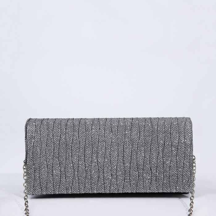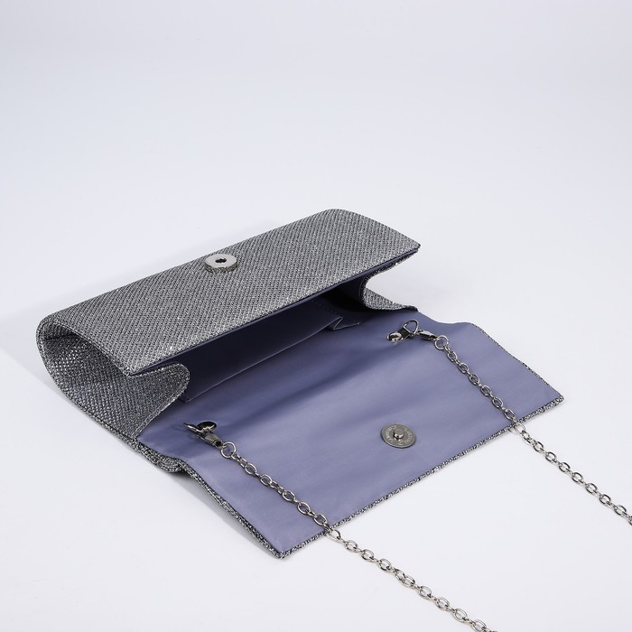 Сумка-клатч на магните, длинная цепь, цвет серебристый