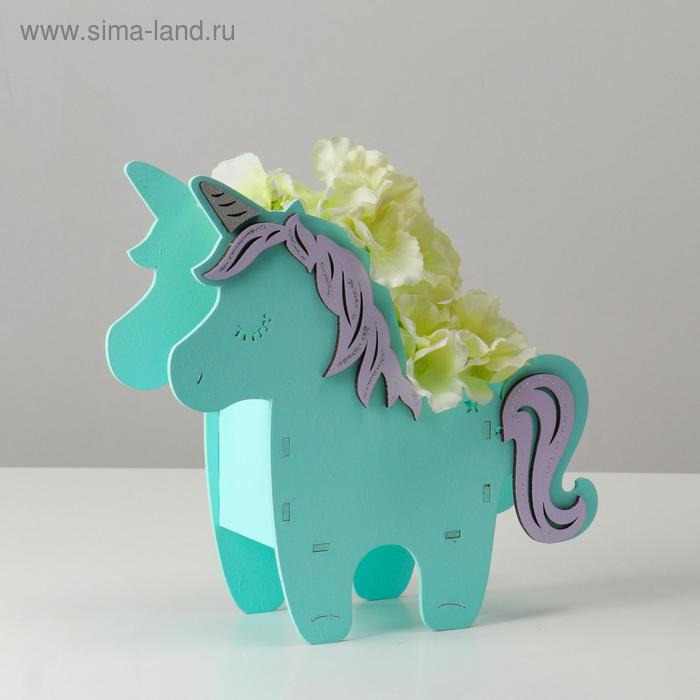 Кашпо деревянное 21.5×7×21 см уникальное "Единорог", тиффани сиреневый