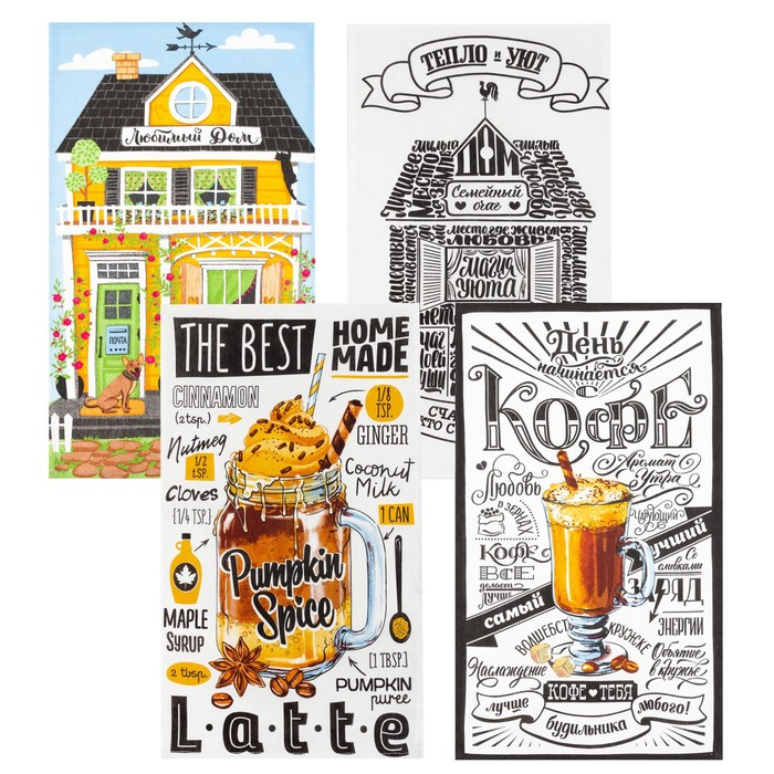 Набор кухонных полотенец Доляна «Любимый дом», 35х60см-4шт, 100% хлопок