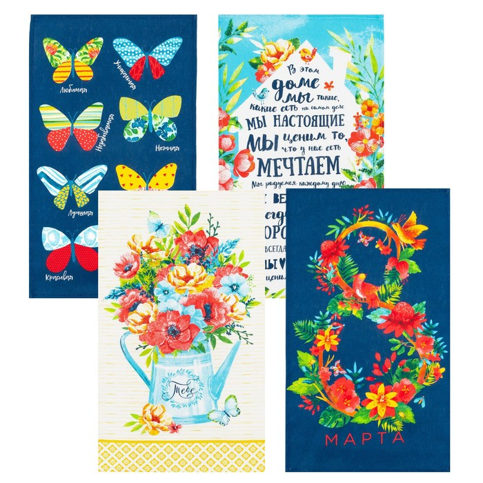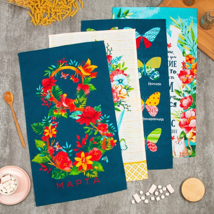 Набор кухонных полотенец Доляна «8 Марта», 35х60см-4шт, 100% хл