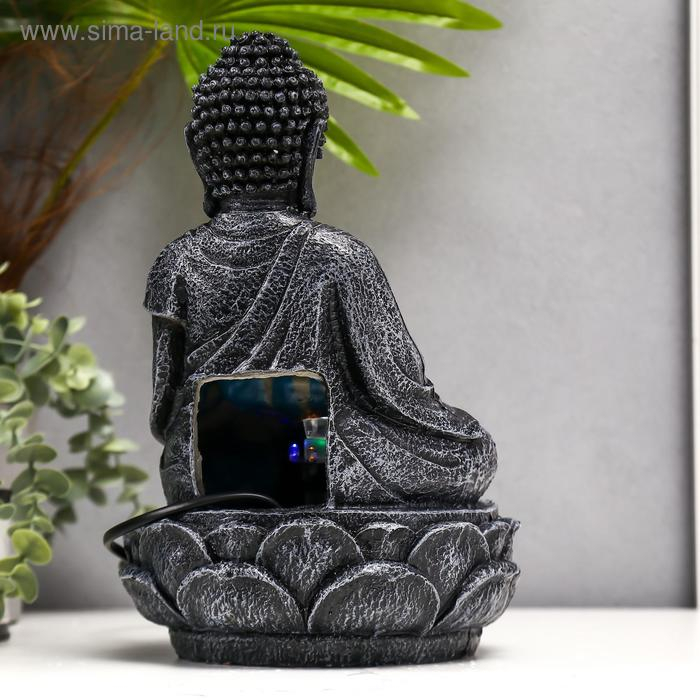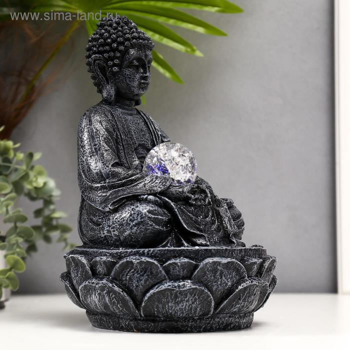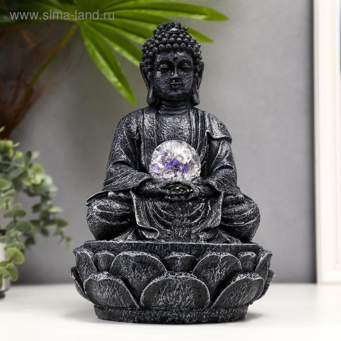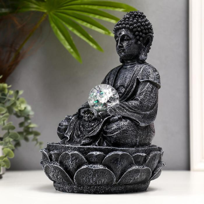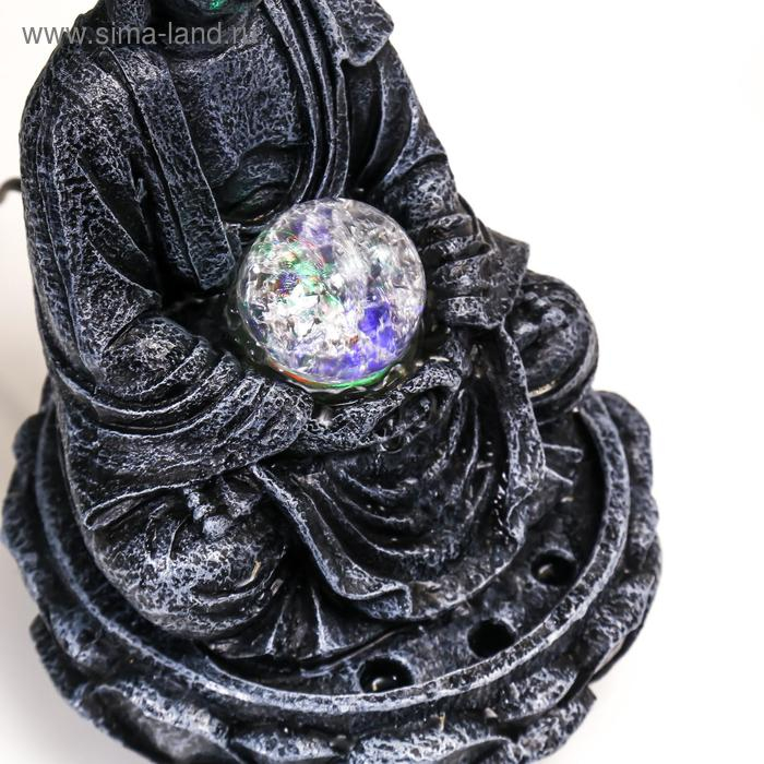 Фонтан настольный от сети, подсветка "Серый будда с шаром" 30х19х19 см