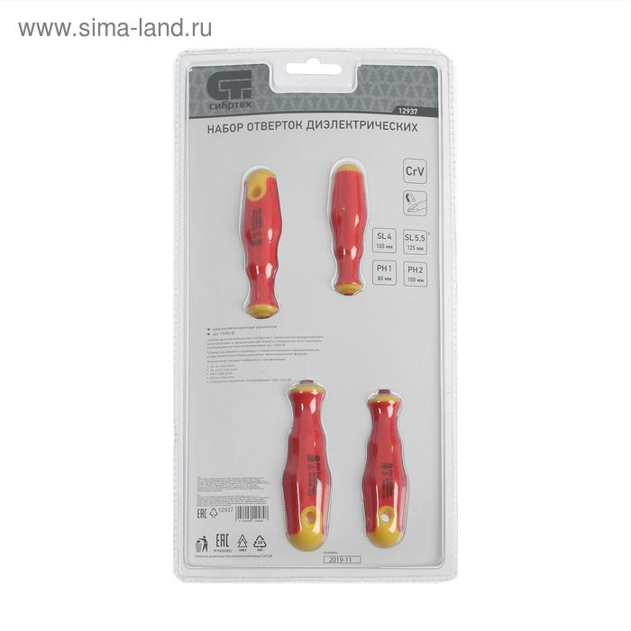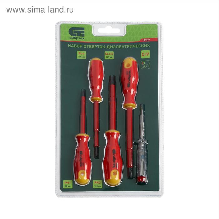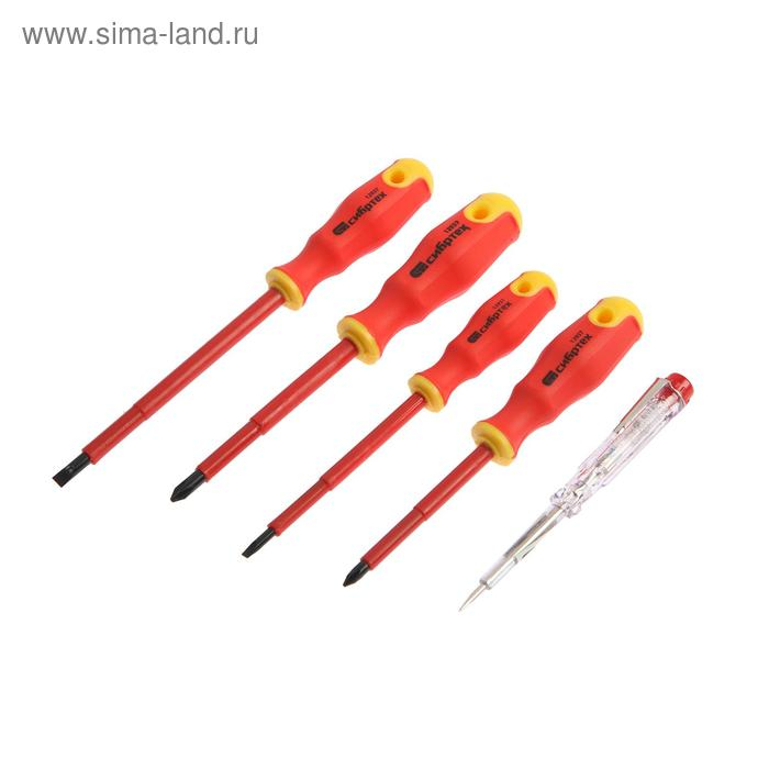 Набор отверток диэлектрических "Сибртех" 12937, до 1000 В, тестер, CrV, 2К рукоятки, 5 шт.