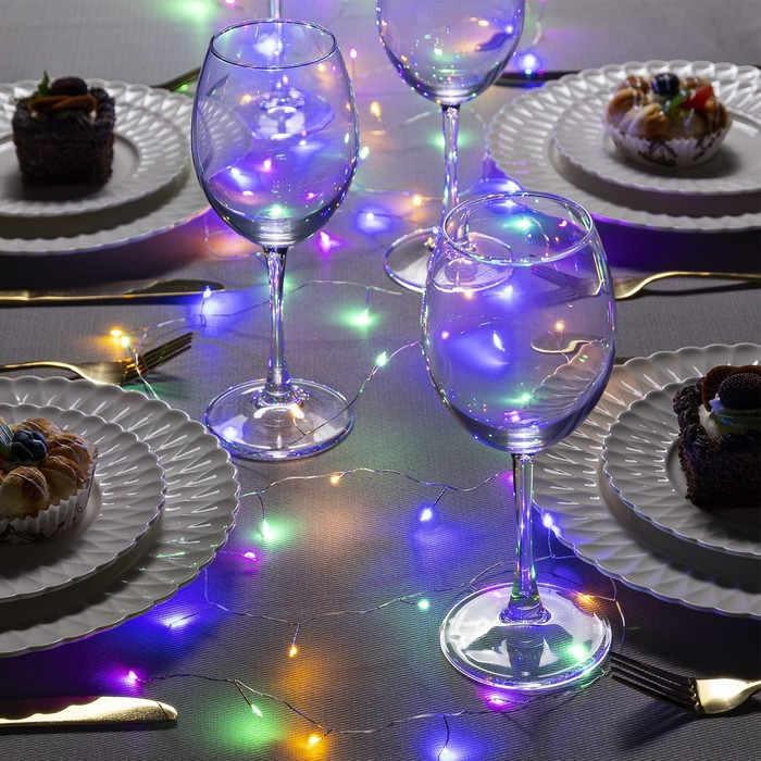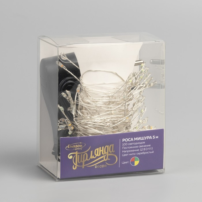 Гирлянда «Мишура» 5 м роса, IP20, серебристая нить, 100 LED, свечение мульти, 12 В