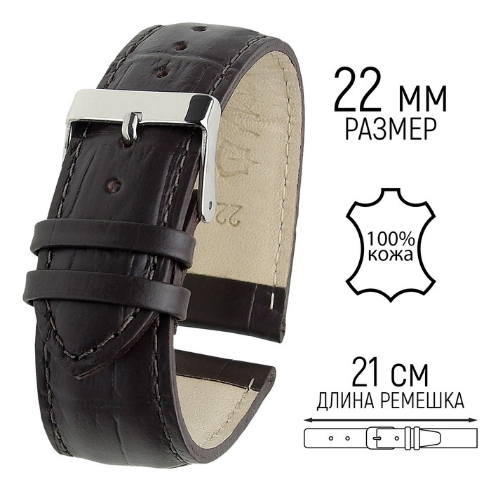 Ремешок для часов, 22 мм, запряжник 80 мм, горт 120 мм, натуральная кожа, коричневый