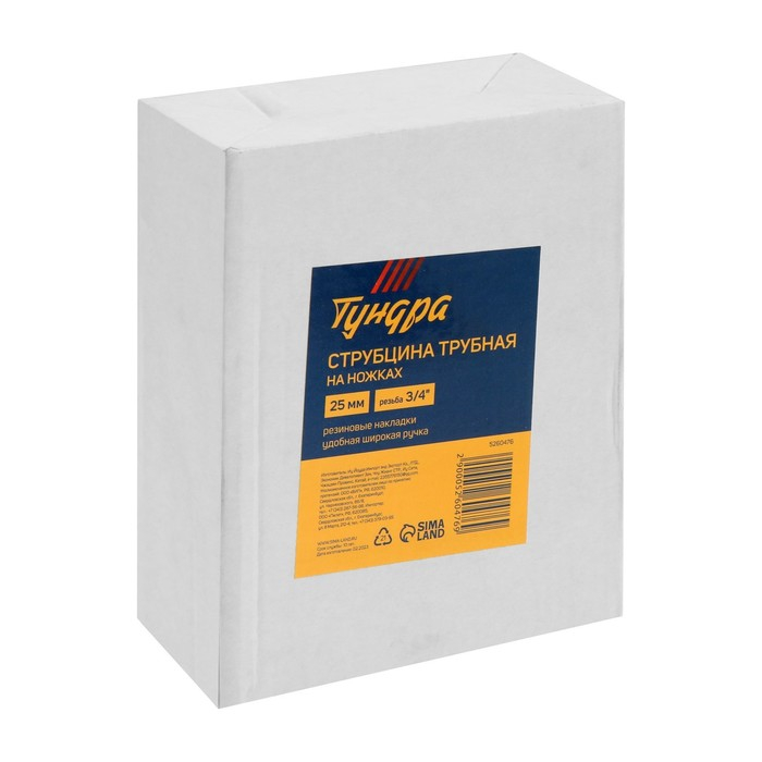 Струбцина трубная ТУНДРА, на ножках, резиновые накладки, 3/4"