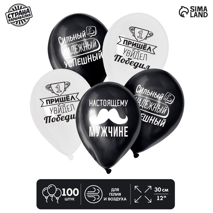 Воздушный шар латексный 12" "Настоящему мужчине", комплименты для него, 100 шт.